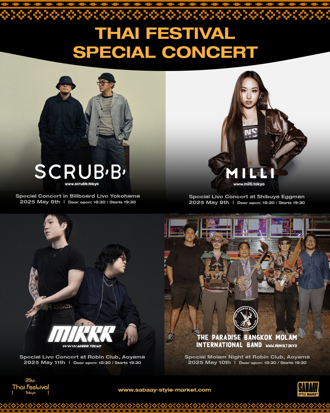 Scrubb、Milli、PBMIB、Mirrrのソロコンサートをタイフェスティバル東京2025有料イベントにて開催