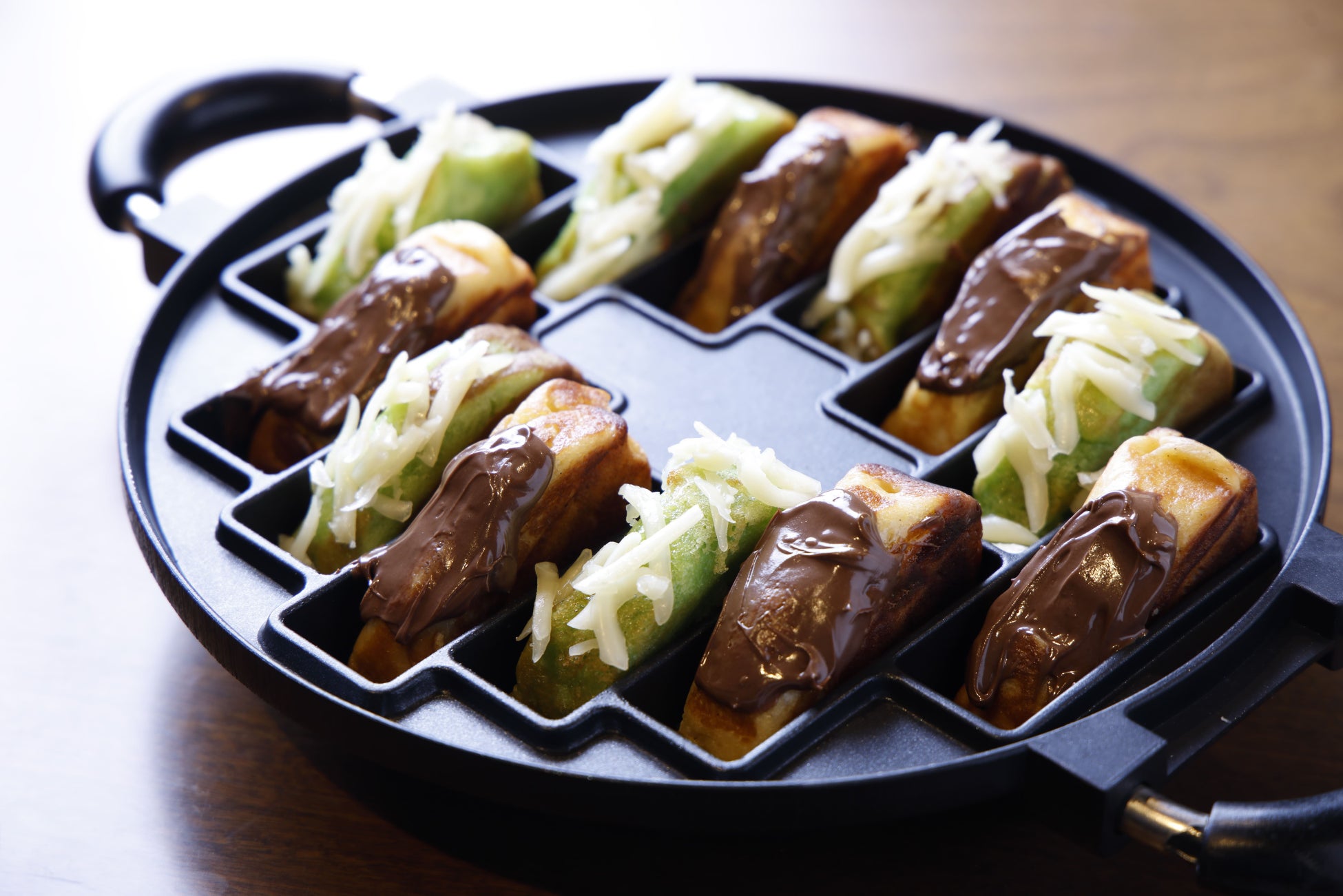 インドネシアの屋台菓子「プキス」が、チーズやチョコソースで現代風にアレンジ。ココナッツミルクと卵の風味が香ばしく広がり、懐かしくも新しい甘さを楽しめます。