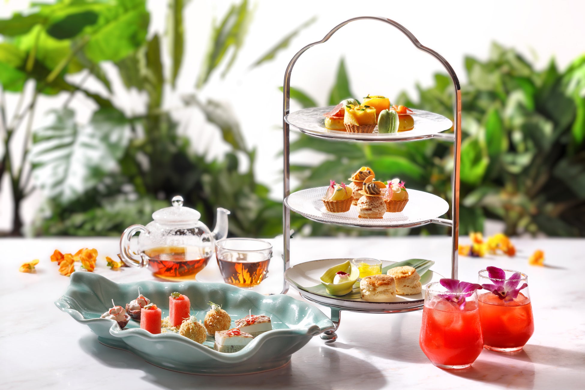 タイのテイストとアフタヌーンティー文化のエレガントな融合。日本の旬の食材を使い、現代風にアレンジしたエラワン・ヤム・バイは、バンコク・サイアムにいるかのように時間を忘れてゆっくりとお楽しみいただけるアフタヌーンティーです。