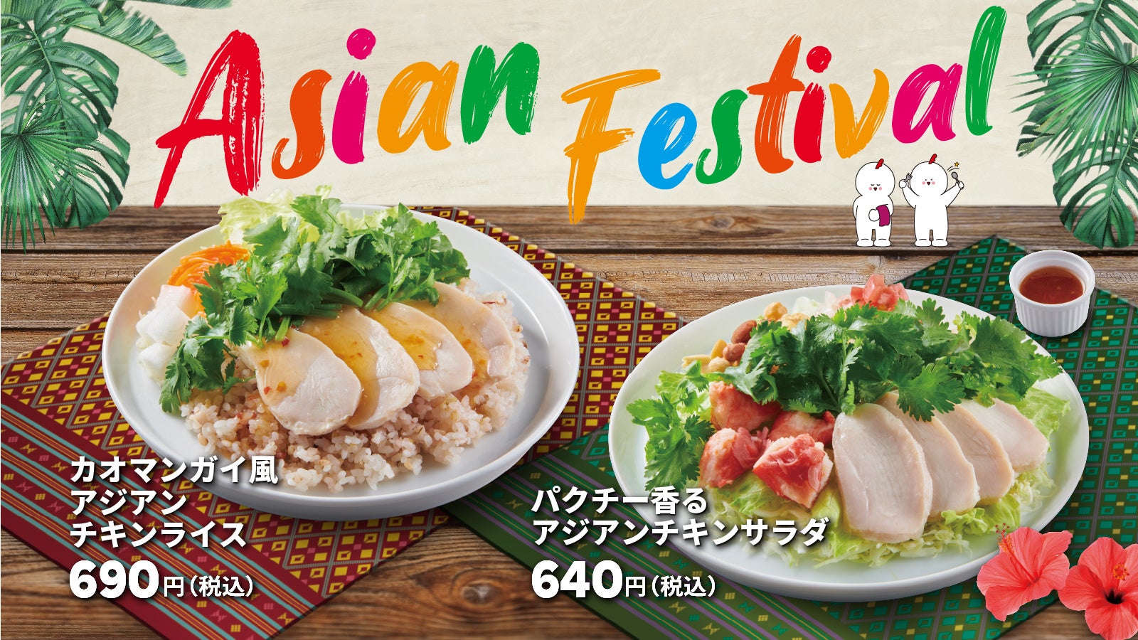 定番人気の「カオマンガイ風アジアンチキンライス」(690円税込)に加え、今年はパクチー好きにはたまらない「パクチー香るアジアンチキンサラダ」(640円税込)が新登場。暑い季節にぴったりの、爽やかでヘルシーな味わいをぜひお楽しみください。