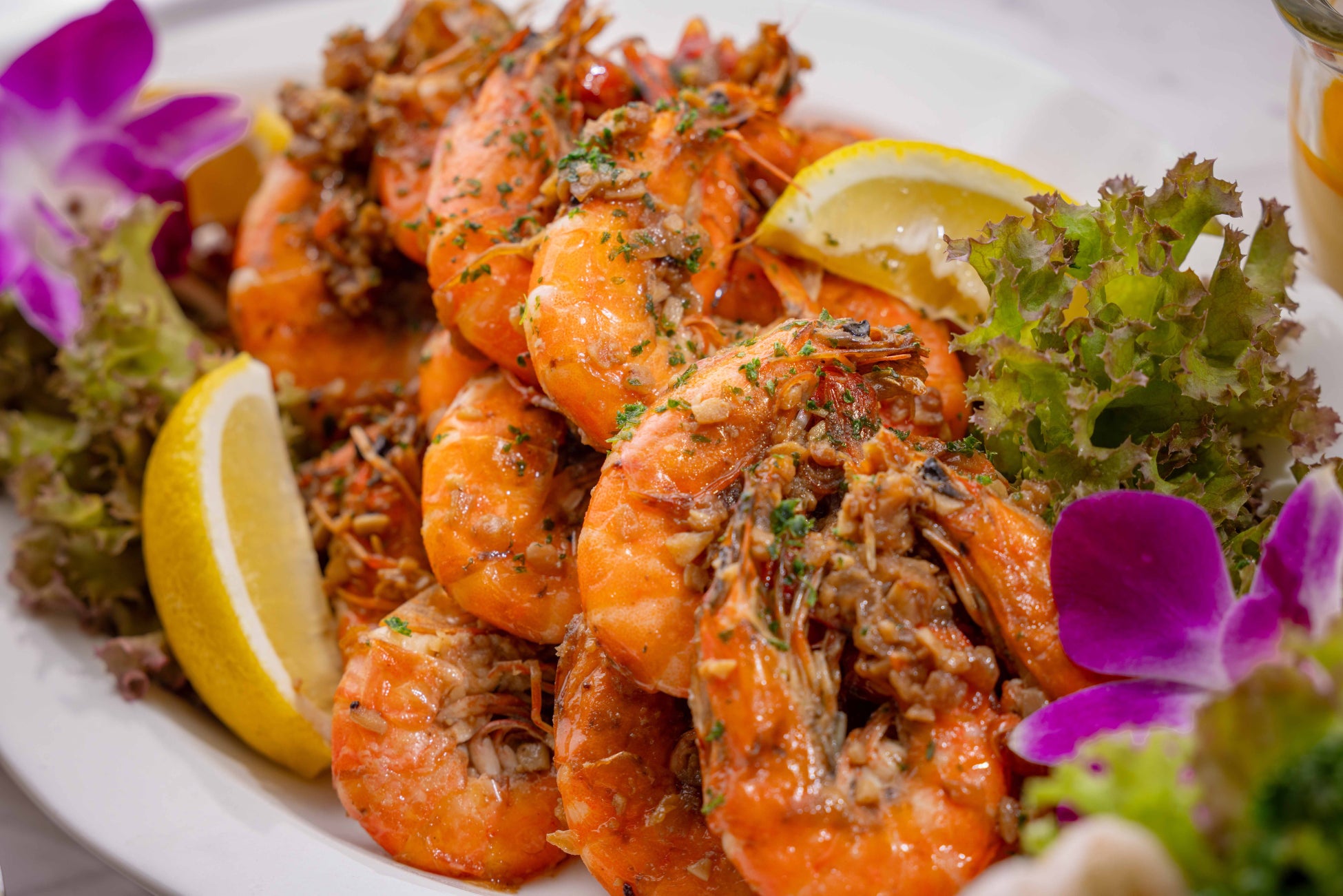 パーゴラ名物ローストビーフはもちろん、ハワイ名物ガーリックシュリンプはガーリックの香りが食欲をそそります。