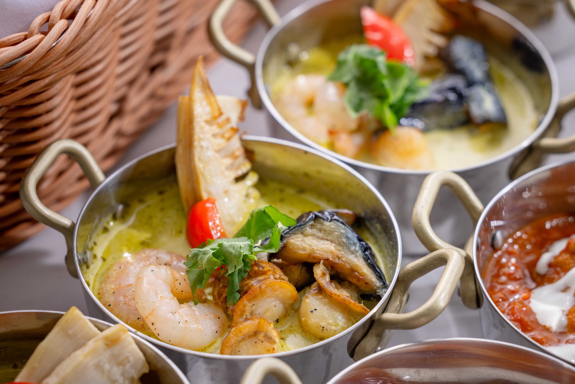 ハワイのガーリックシュリンプ、韓国のヤンニョムチキン、タイのグリーンカレー、イタリアのピッツァなど各国の料理をブッフェスタイルでお楽しみいただけます。