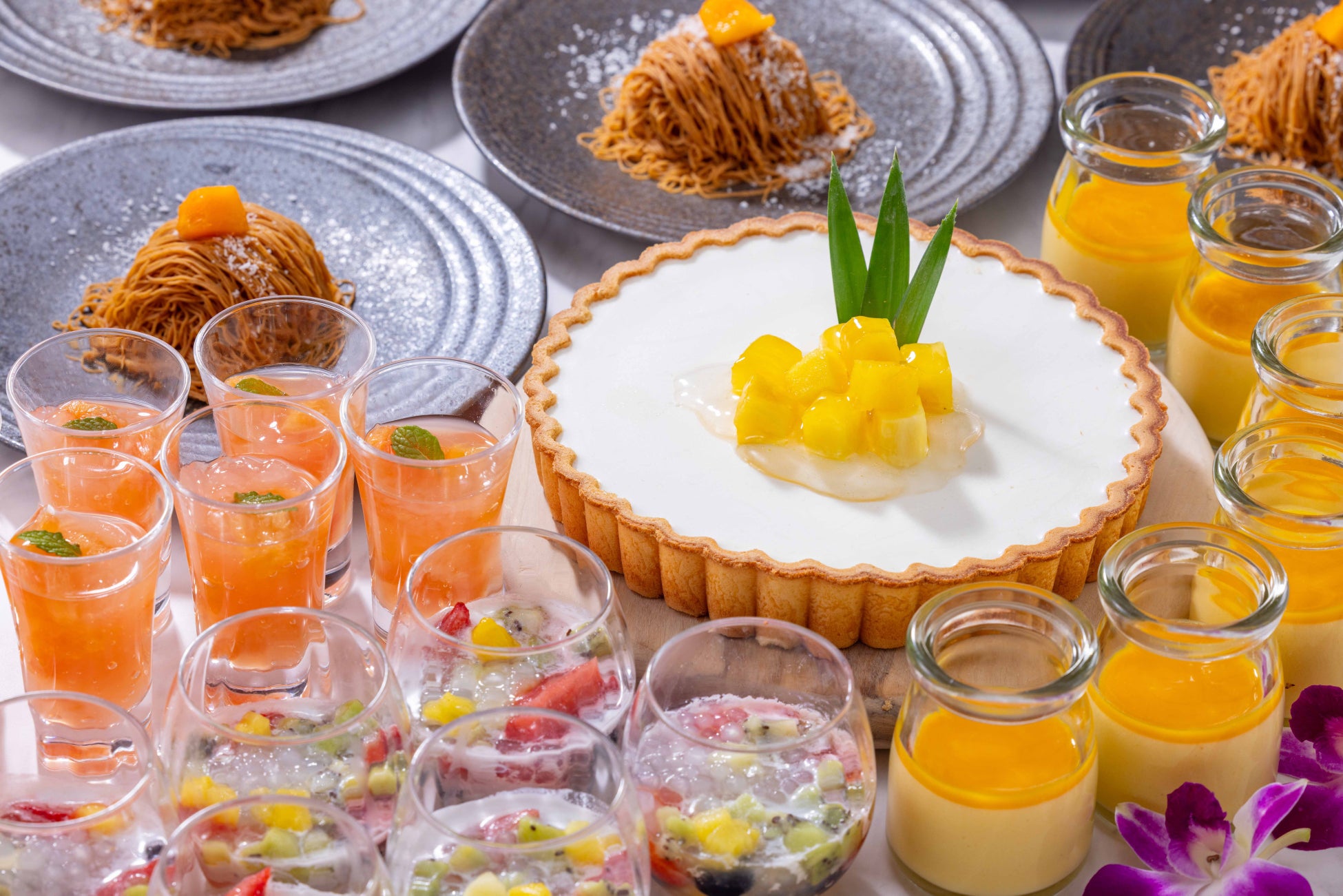 人気のしぼりたてモンブランはバニラアイスの上に細さ1mmのマンゴーとマロンのクリームをたっぷりとしぼります。パイナップルのタルトや、マンゴープリン、台湾カステラ、ベトナム発祥のチェーなど色鮮やかなデザートが勢ぞろい。