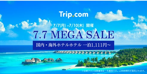 グローバルオンライン旅行サービスプロバイダーのTrip.comは2025年7月7日(月)から7月10日(木)までの4日間限定で「7.7 MEGA SALE」を開催いたします。国内や海外の航空券・ホテルを限定価格で販売し、国内・海外レンタカーも最大50%オフなど他にも限定のスペシャルオファーが盛りだくさんです。