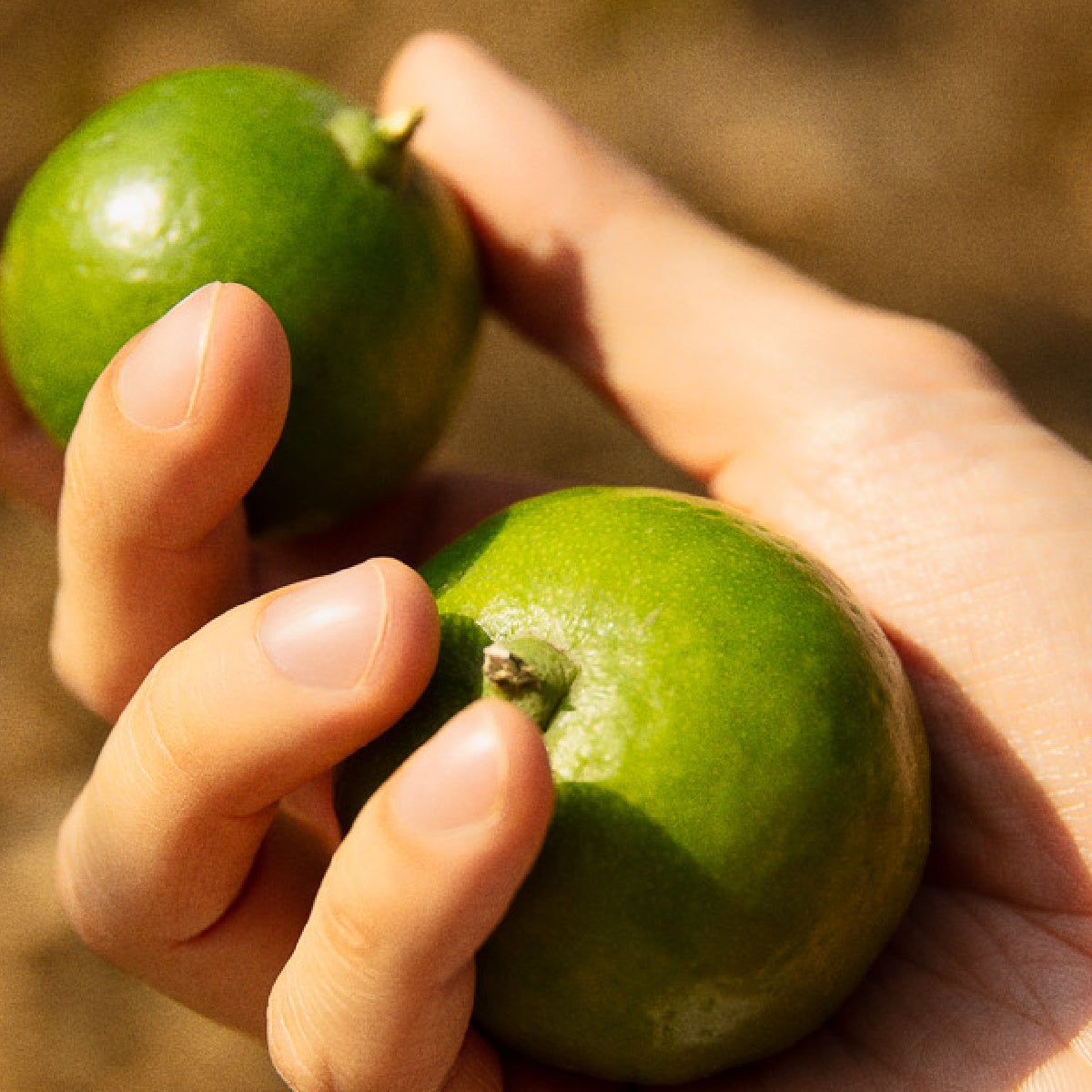 夜明けの光を浴びたライムとバジル、内なる静けさを呼び覚ます、光のような香り