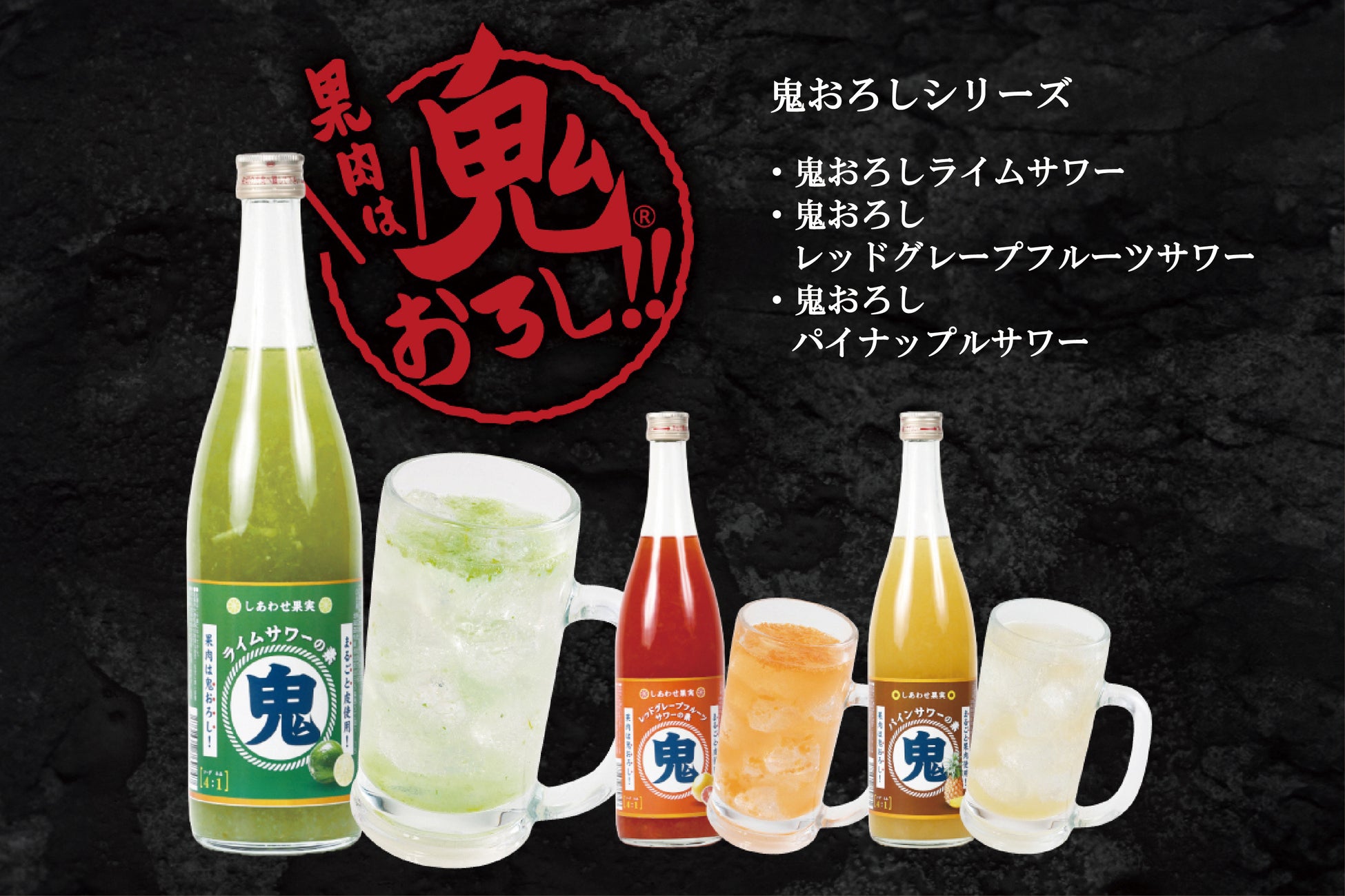 果実を荒くおろした果肉と果汁たっぷり!キリっと爽快な「鬼おろし」のサワーがこの夏はおすすめ。