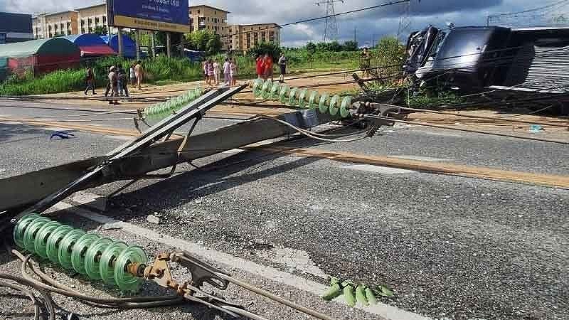9月28日午前9時ごろ、チョンブリー県シラチャーで、ピックアップトラックが道路脇の高圧電柱に衝突する事故を起こしました。