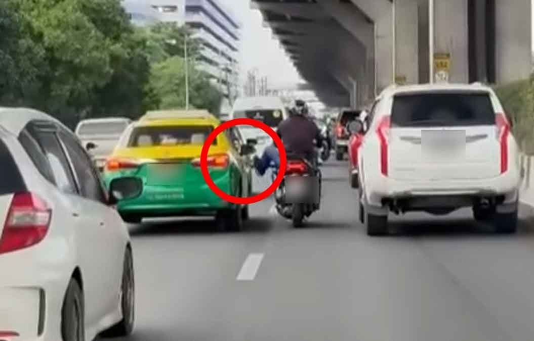 バンコク、タクシーのミラーを蹴り壊したバイク運転手をSNSで糾弾! 警察が捜査を命じ犯人特定!