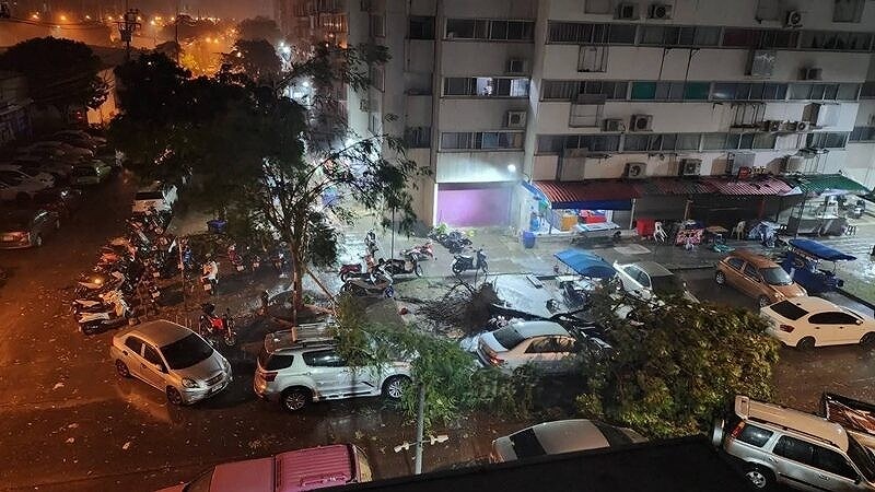 また、フアマーク地区のラムカムヘーン60付近では、大木や民家のひさしが折れて倒れ、複数の自動車が破損する被害がでています。