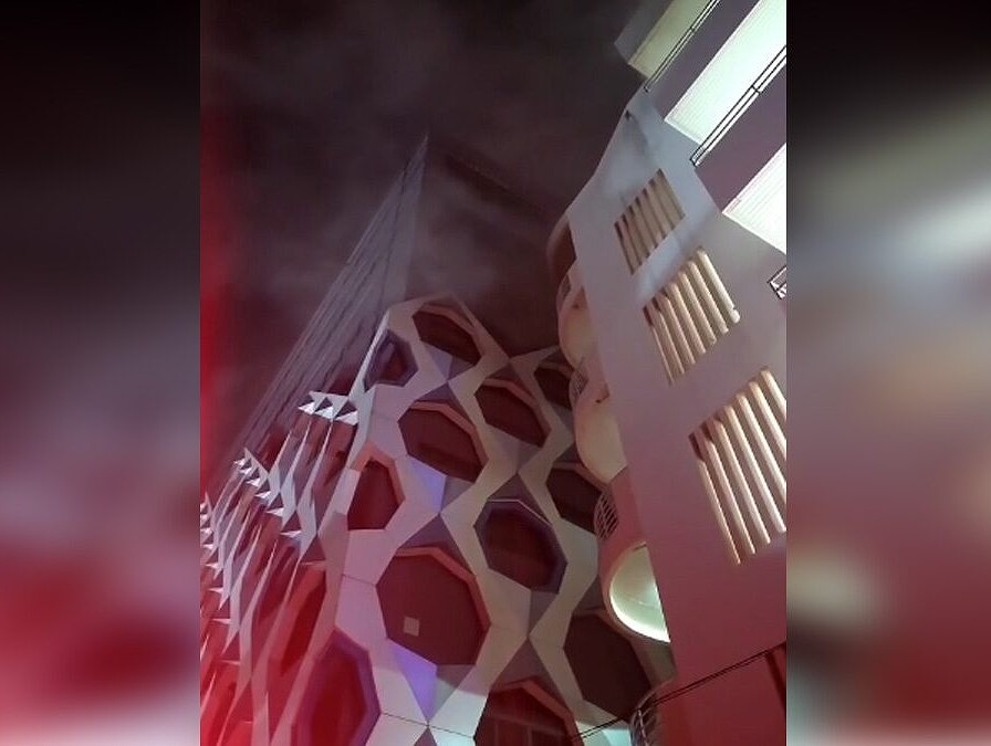 火災は医学生寮の建物内で発生し、建物の上層階から大量の黒煙が立ち上る様子が確認されています。