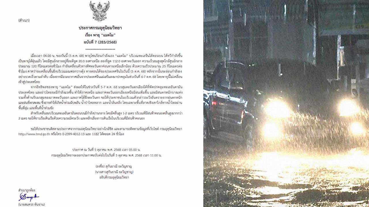10月5日、タイ気象局は「マットモー(Matmo)」に関する第7号気象警報を発表しました。