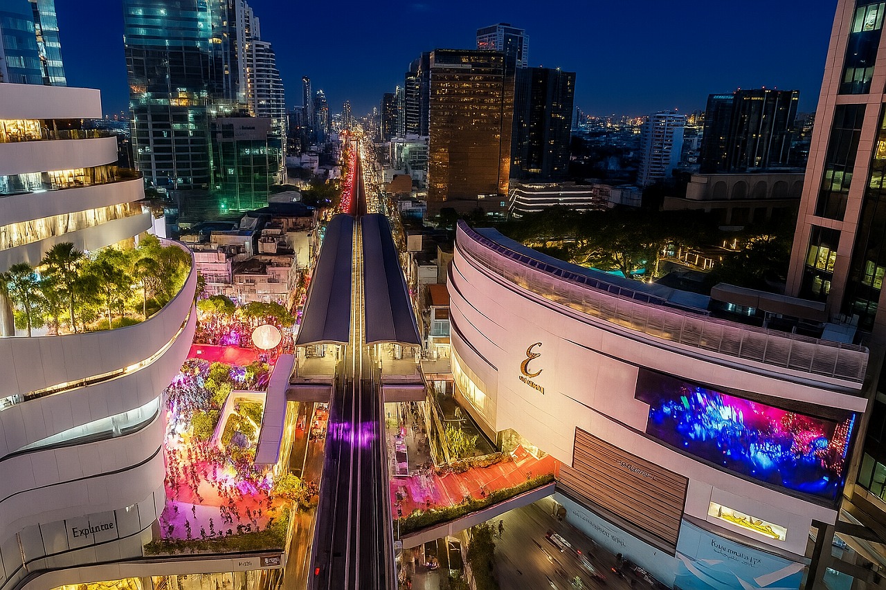 スクンビット地区は「現代的なバンコクの中心地」として知られ、エムクオーティア、エンポリアム、エムスフィア、ターミナル21といった大型ショッピングモールのほか、高級ホテル群やBTSスカイトレインによる利便性、そしてランナーや健康志向の市民に人気のベンチャキティ公園が隣接しています。