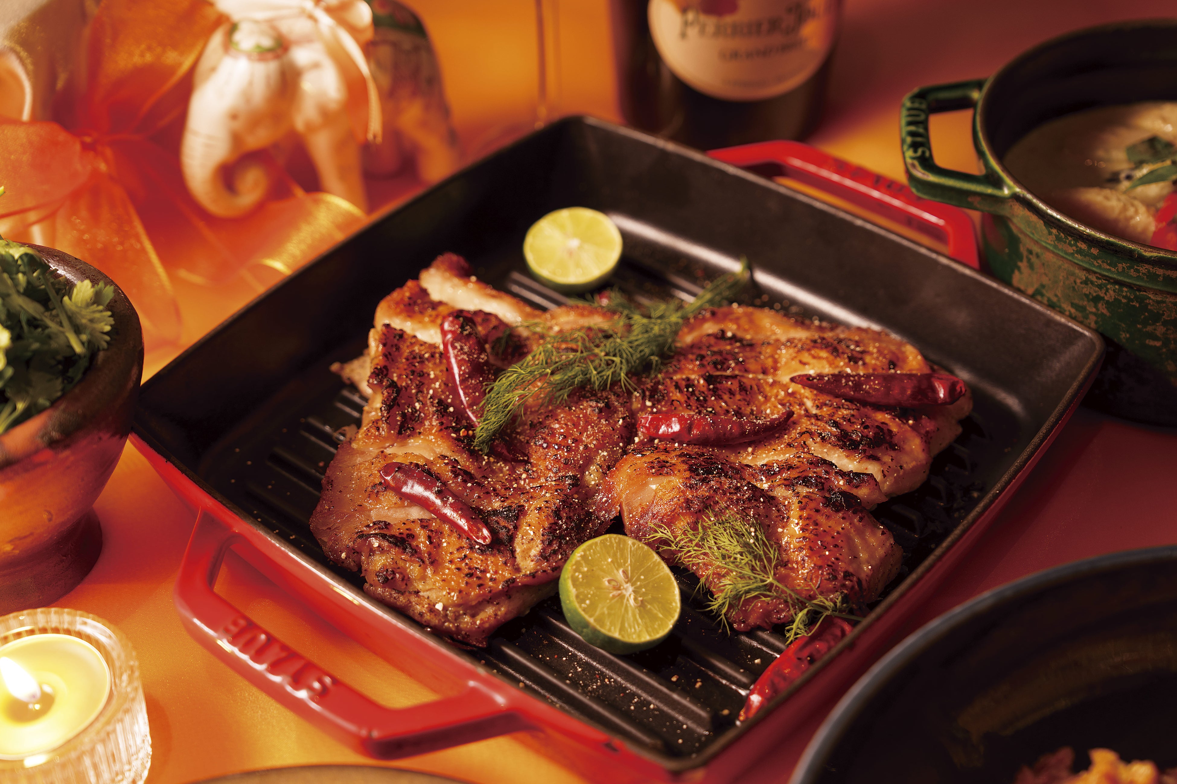 「グリーンカレー(ゲーン キョウ ワン)」や「マッサマンカレー(ゲーン マッサマン)」といったタイの定番料理から、厳選した素材を活かした「天草大王のグリル(ガイヤーン)」や松阪ポークのグリル(ムー ヤーン)」など肉料理まで豊富に取り揃えております。「タイの焼きそば(パッ タイ)」は出来立てをお客さまのお席へとお届けいたします。