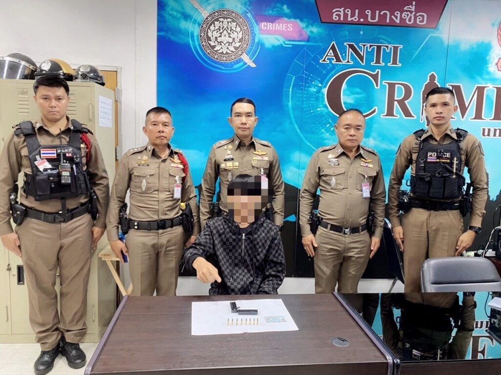 10月14日、バンコクのバンスー警察署は、無許可で銃を所持していた男をチャトゥチャック地区にあるバンコク北バスターミナル(モーチット)内で逮捕しました。