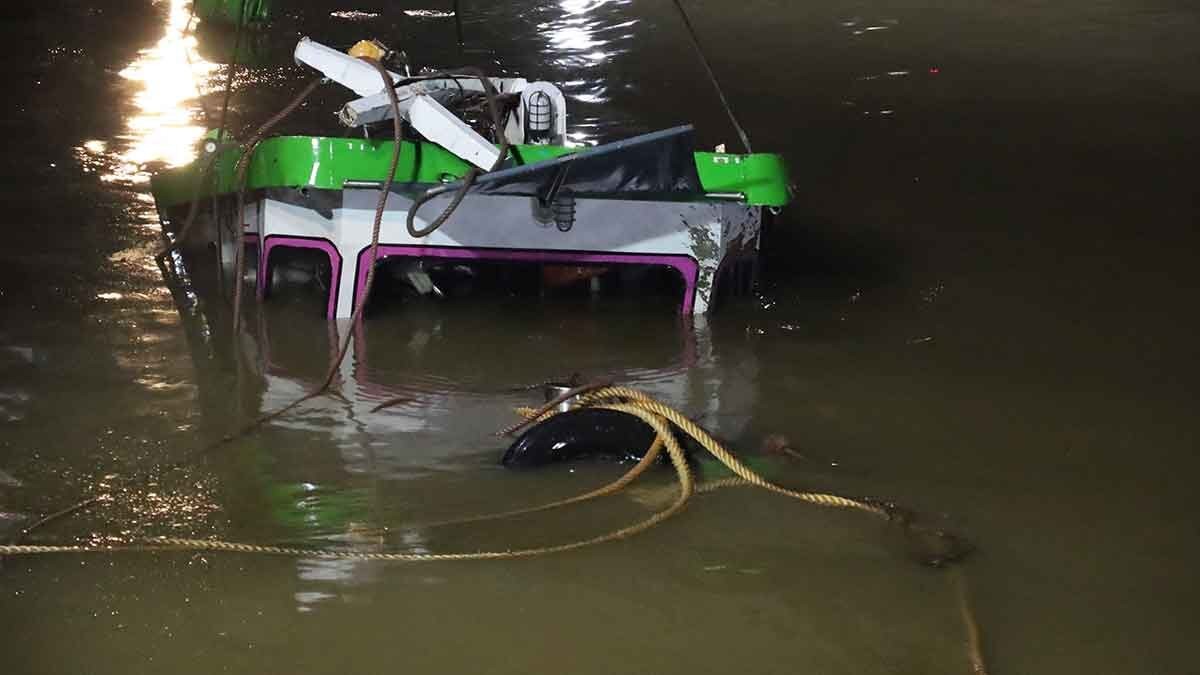 船長は無事に脱出しましたが、妊娠7か月の妻が川の中で行方不明となりました。
