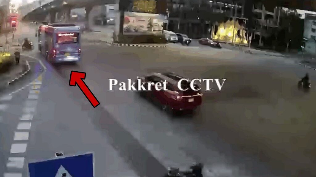 さらに、タイ交通情報サイト「JS100」が添付した防犯カメラ映像には、事故当時、バスが赤信号のまま発進し、ちょうど交差点から出てきたバイクと衝突した様子が映っています。