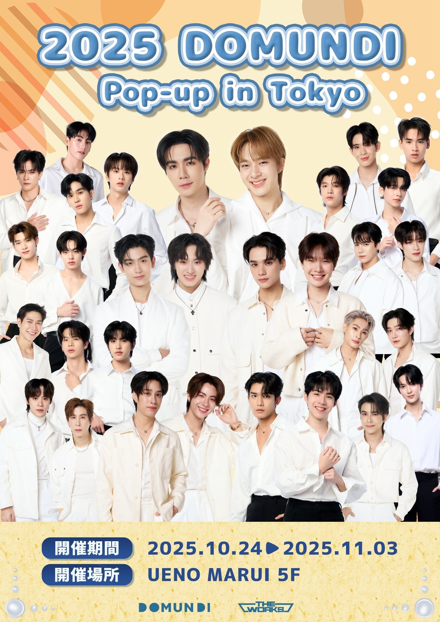 大ヒットタイBL「Cutie Pie」をはじめ、「The Next Prince」、「Your Sky」、そして今タイで話題騒然のホラーBL「KHEMJIRA 逃れられない呪い」など、数々のヒット作を世に送り出している制作会社・Mandee Work所属の俳優集団・DOMUNDI。Zee&NuNew、Max&Nat、Thomas&Kong、Keng&Nampingほか、日本でも人気のペアが多数所属するDOMUNDIによるPOP UP STOREの開催が10月24日(金)〜11月3日(月)に上野マルイにて決定いたしました!