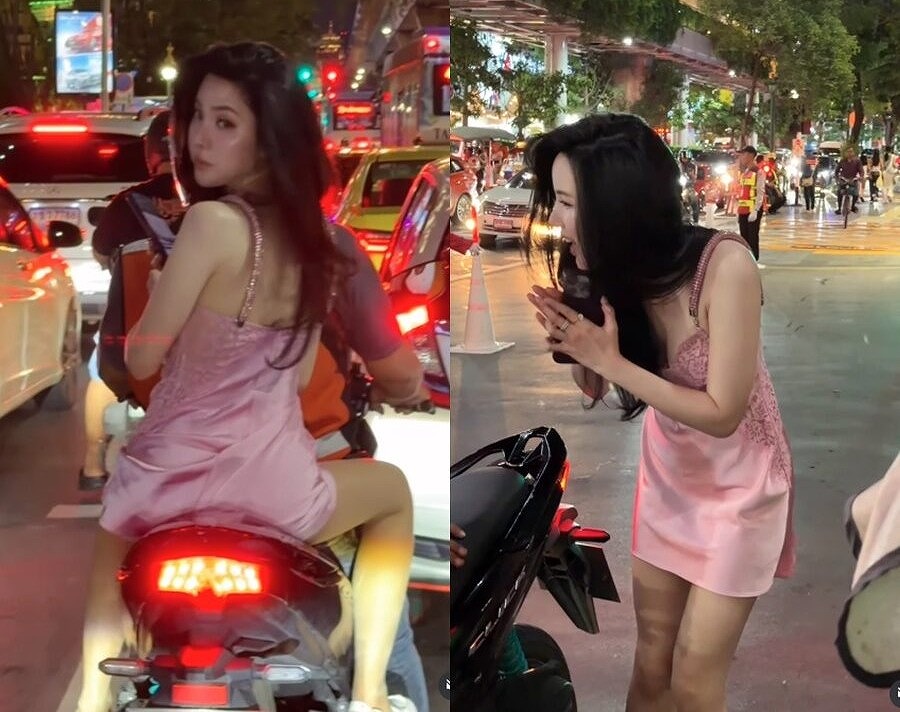 このドレスは、彼女がピンクのネグリジェ姿でバイクタクシーに乗ってイベントに向かう動画がSNSで拡散され、芸能人が次々と真似するほどの大バズり動画となったリアルな御召し物です。