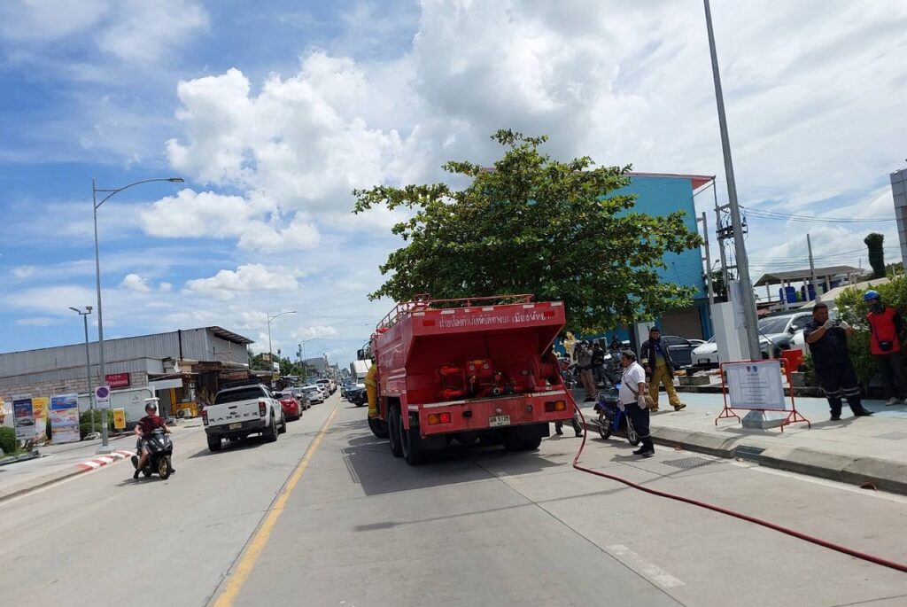 10月19日12時45分ごろ、南パタヤ通りのガソリンスタンドシェル前で、オートバイがLPG(液化石油ガス)搭載のSUV車に衝突し、ガス漏れが発生。