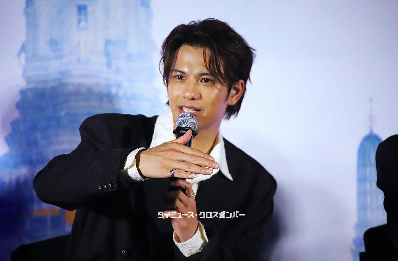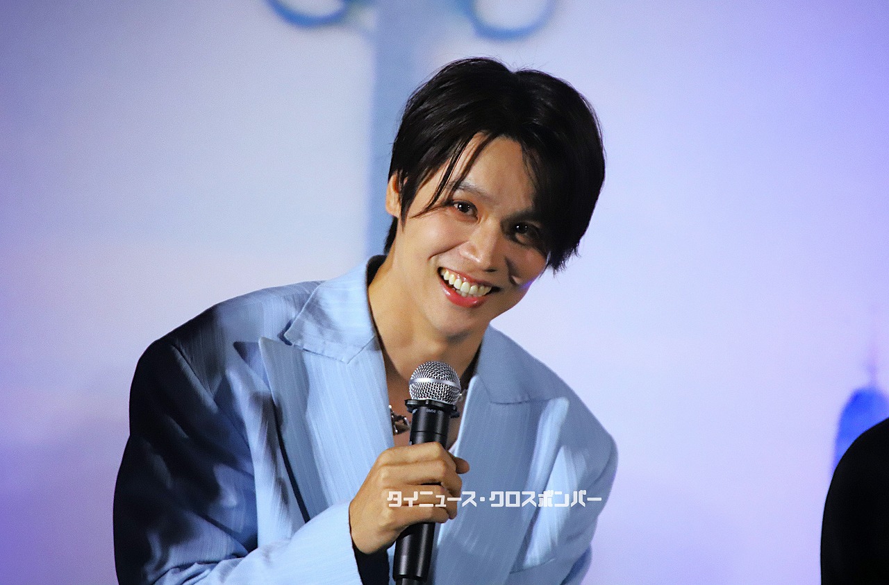 Snow Manの向井康二は、流暢なタイ語で挨拶したのち、急にタイ語を忘れるというしぐさで登壇者からのツッコミ受けるというファンサービスで会場を和ませていました。(その後も向井は、日本語を忘れるというワンクッションを入れていました)