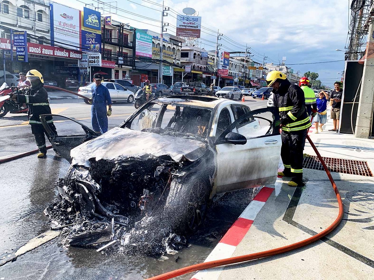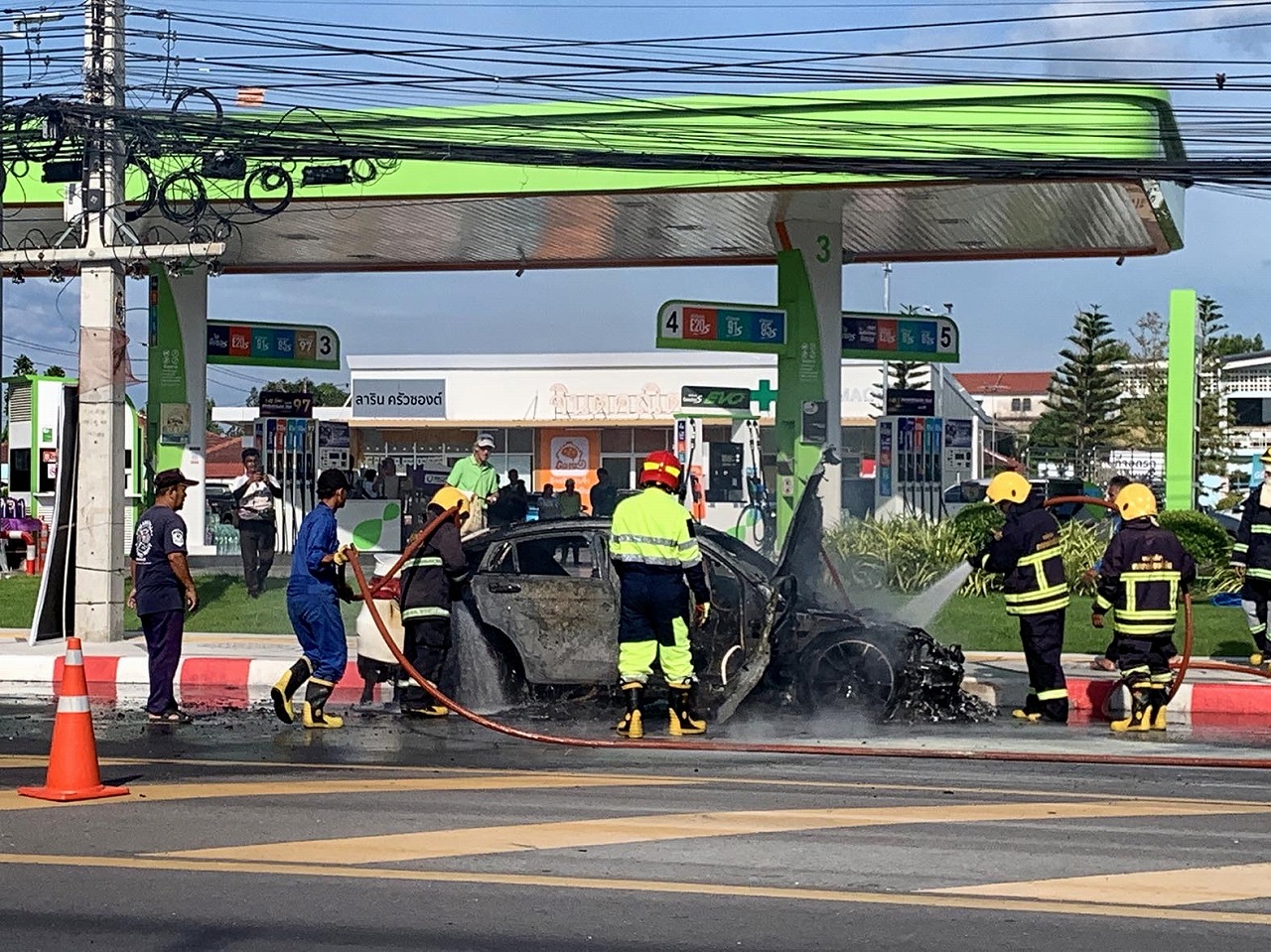 10月23日、プラチュアップキリカーン県フアヒン市の警察に、ペカセム通りのバンチャーク給油所前で車両火災が発生したとの通報が入りました