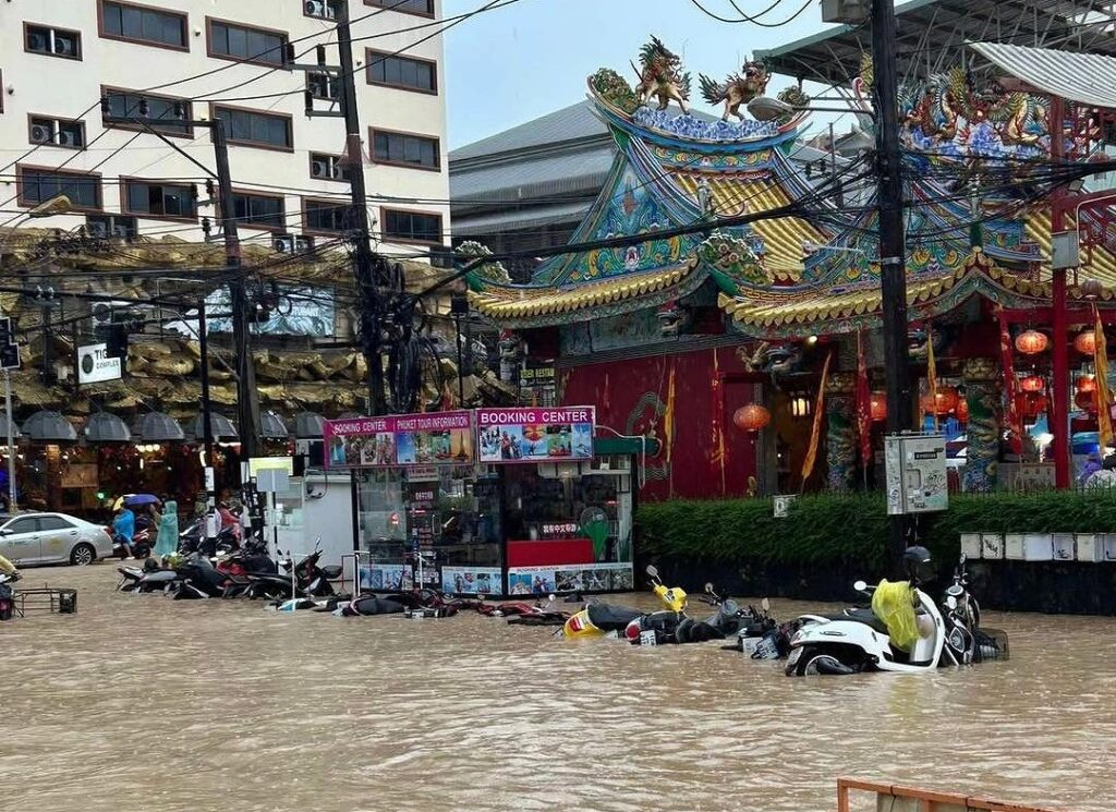 台風「フェンシェン(Fengshen)」の影響により、プーケットで激しい雨が降り続き、市内各地で冠水被害が発生しています。