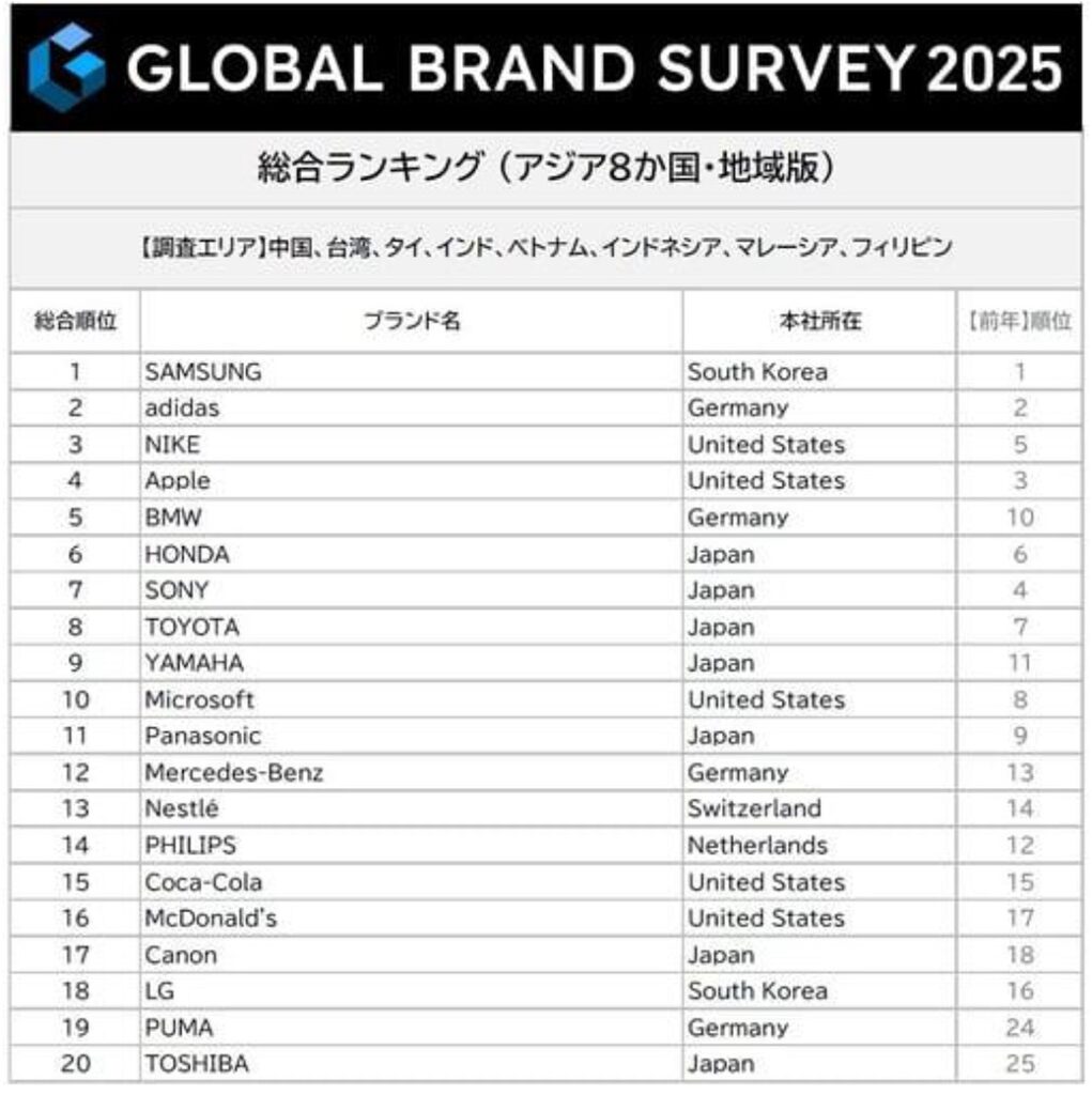 ※出典:日経リサーチ GLOBAL BRAND SURVEY 2025 総合ランキング