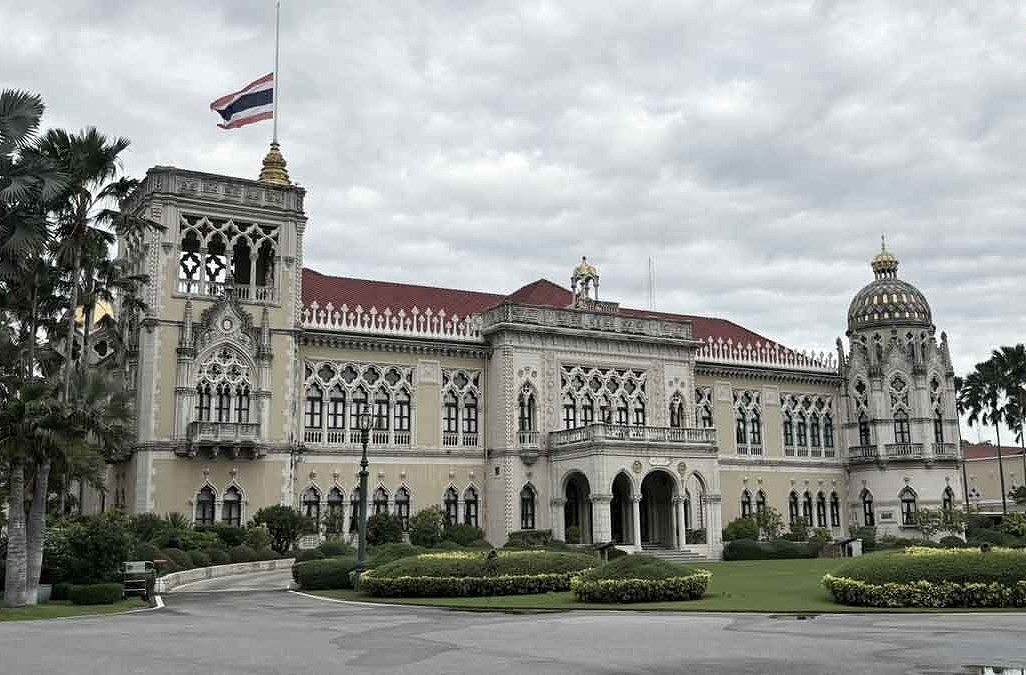 10月25日、タイ政府庁舎では、シリキット王太后陛下の崩御発表を受け、厳粛な雰囲気に包まれていました。