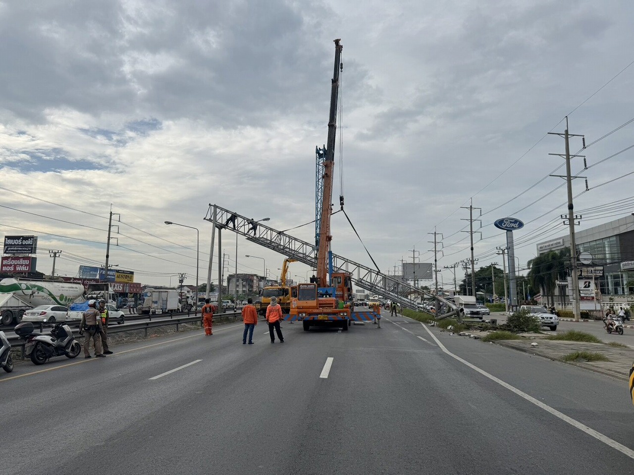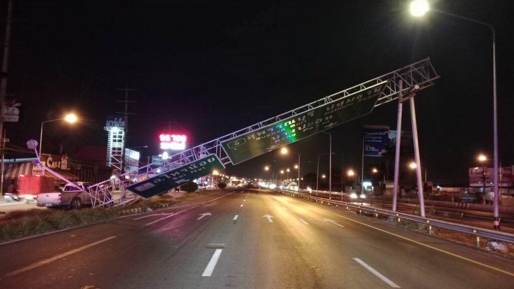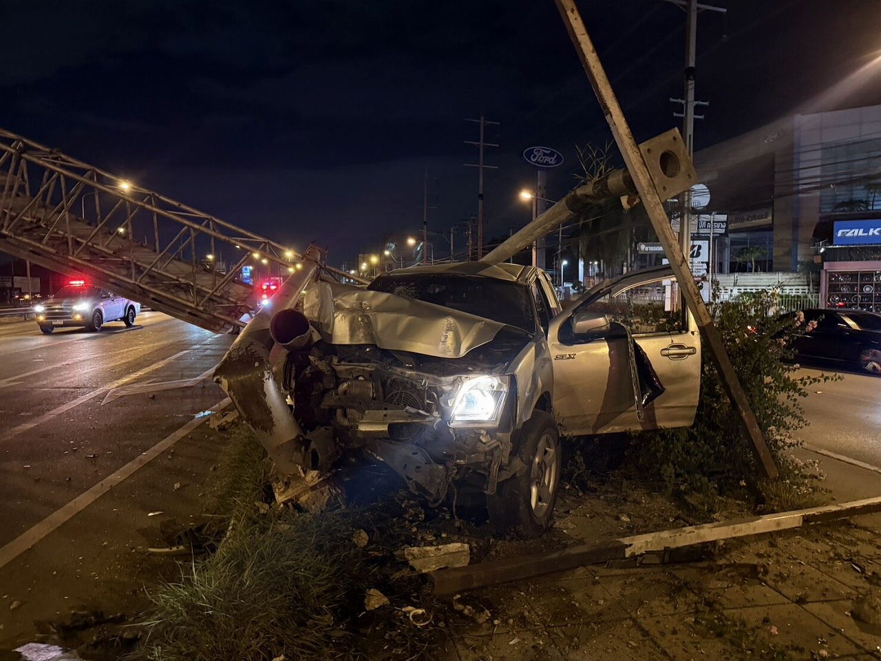 10月27日午前5時30分ごろ、ノンタブリー県バーンブアトーン郡のカンチャナピセーク通り外回りで、ピックアップトラックが大型の道路案内標識柱に衝突する事故が発生しました。