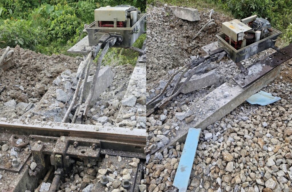 タイ国鉄(SRT)の広報によると、午前6時33分ごろ、マルーボー駅南側の分岐器付近で爆発があり、分岐器および枕木の一部が損傷したとの報告を受けました。