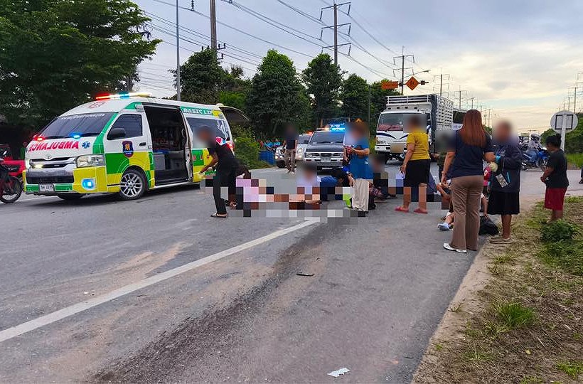 10月28日午前7時ごろ、ラヨーン県ノーンラロック地区3143号線上で、学生送迎用のソンテオ(小型乗合車)が、工場従業員送迎バスに正面衝突し、多数の死傷者を出す大事故が発生しました。