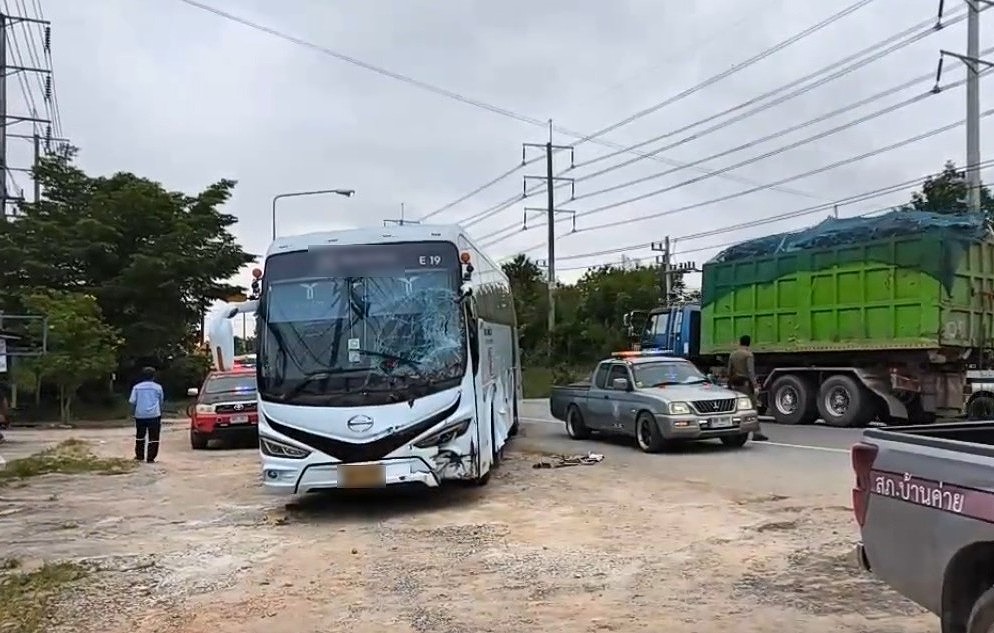 タイ・ラヨーン県、学生送迎ソンテオが工場送迎バスに衝突。1名死亡、23人負傷。