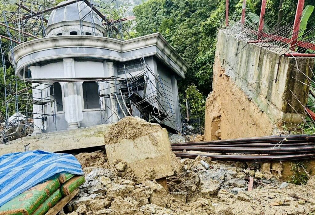 しかし、数日間にわたる激しい雨により地盤が沈下し、警備員の宿舎として使用されていた建物の一部と土留め壁が損壊してしまいました。