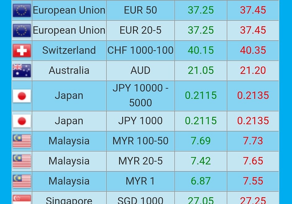 それらを受け、最新のタイ銀行の発表によると、円の為替レートは100円=21バーツを下回り、20.8374~20.9178バーツとなった。