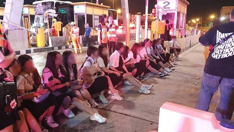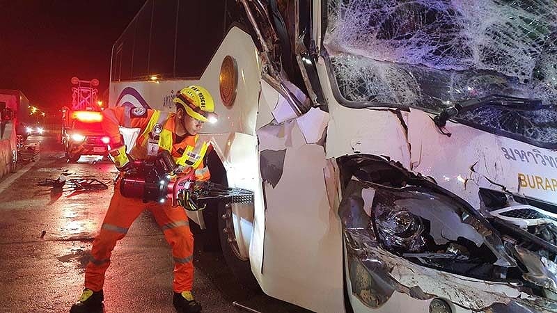 10月31日18時30分ごろ、チョンブリー県バンプラ料金所前(モーターウェイ)で、大学の送迎バス2台が追突事故を起こしたとの通報を救助隊が受けました。