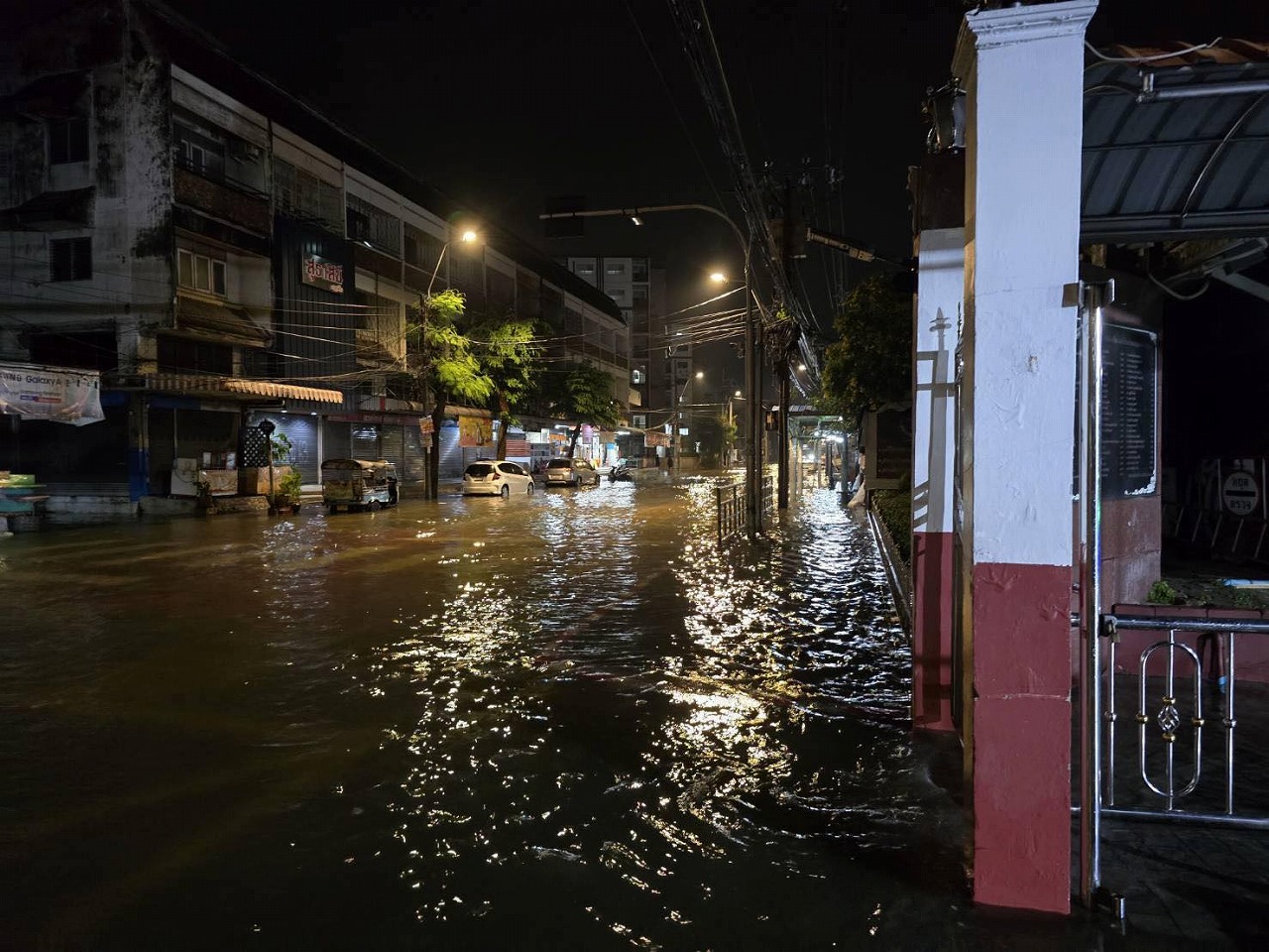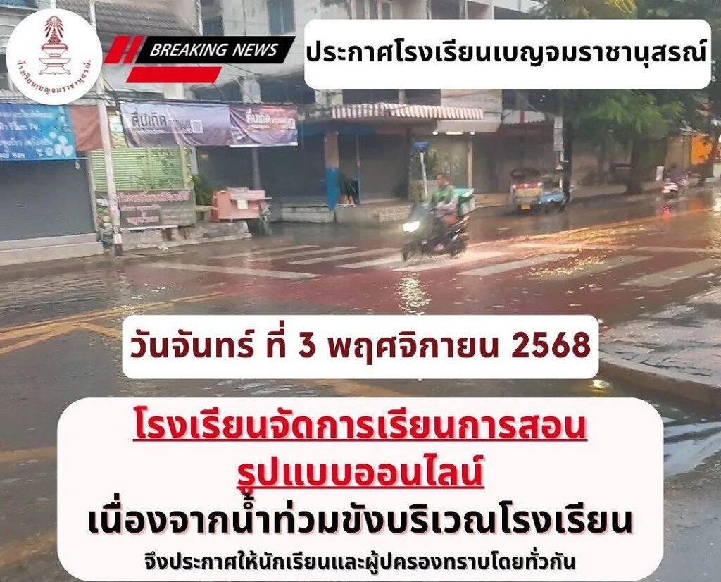 ノンタブリーとの県境にあるベンチャマラーチャーヌソン校(โรงเรียนเบญจมราชานุสรณ์)は11月3日、前夜の大雨によって学校前の道路が冠水したため、登校が困難な状況になっていると発表しました。