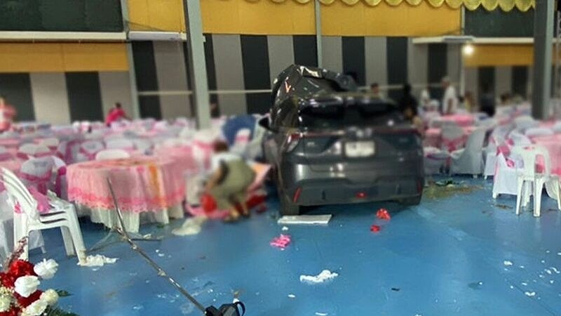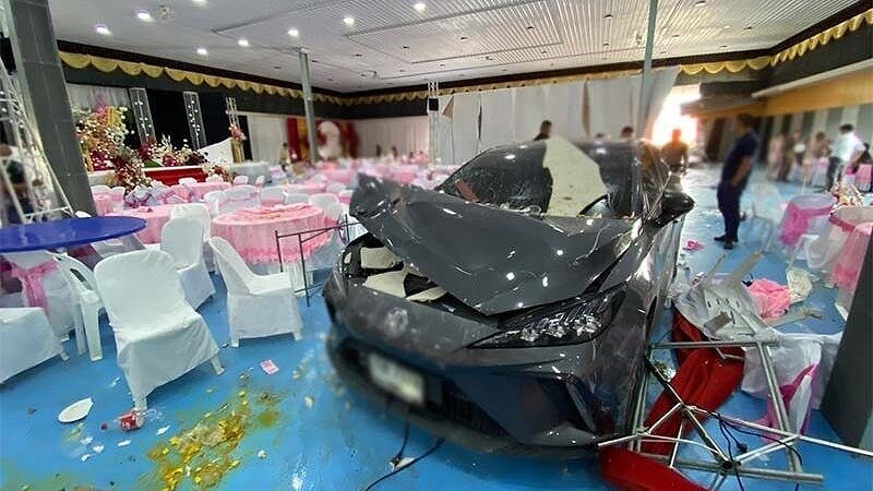 11月3日午後2時ごろ、タイ南部クラビー市のクラビーヤイ地区にある結婚式の宴会場で、乗用車が突然建物内に突っ込む事故が発生しました。