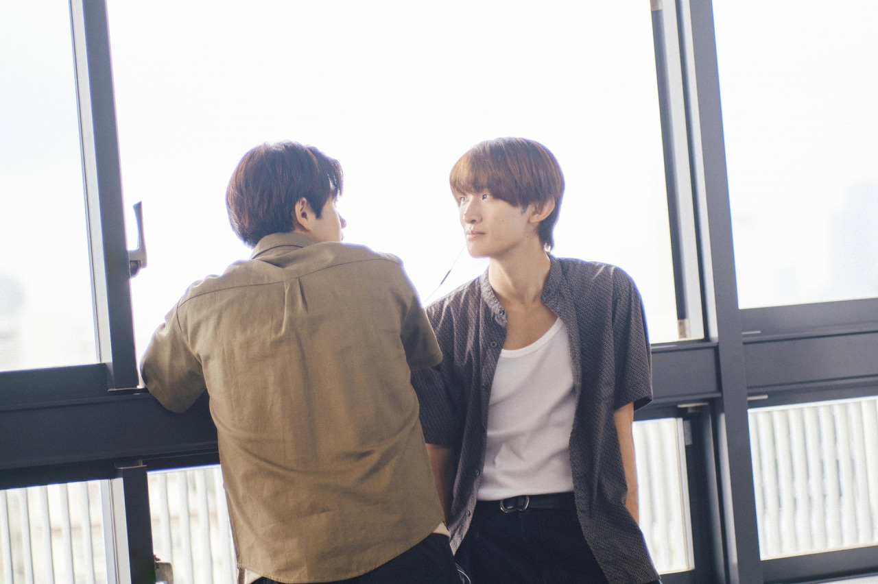 公開されたのは、ソウタとカイがバンコクで“運命の再会”を果たすシーンをはじめ、ソウタが先輩社員のジンに、大学時代の片想いの初恋を打ち明けるシーン、カイがバンド仲間に“未完成の曲”について問い詰められるシーン、そして、未完成だったソウタへの想いを綴った曲を完成させたカイが、ついにライブで「LOVE SONG」を披露するシーンだ。