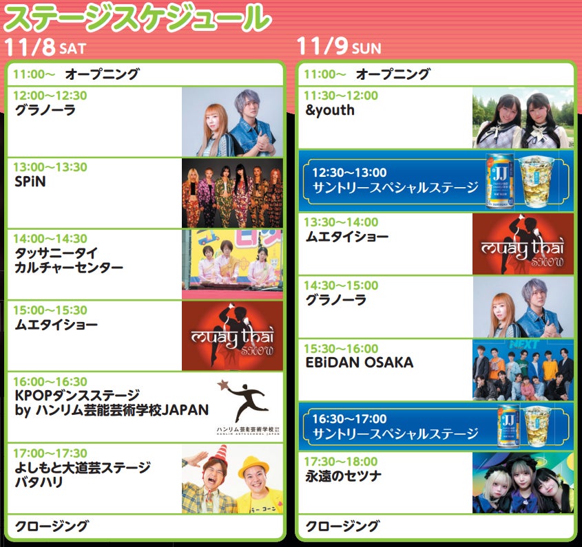 K-POPダンスステージやタイの民族楽器演奏、ムエタイショーをはじめ1日中様々な出演者によるステージショーが行われます♪