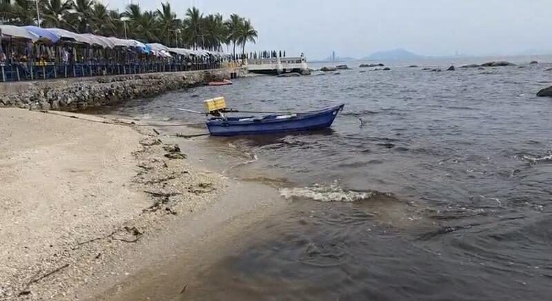 地元の屋台店主らは、黒ずみの原因を最近の雨や嵐、バンパコン川からの淡水流入、そしてプランクトンの大量発生(ブルーム)の組み合わせだと説明しています。