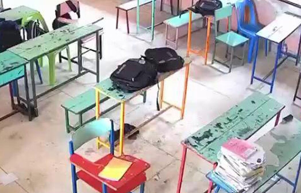 教室パニック! 生徒の父親が拳銃で同級生を暴行。銃口を突き付け土下座させる地獄絵図!タイ南部。