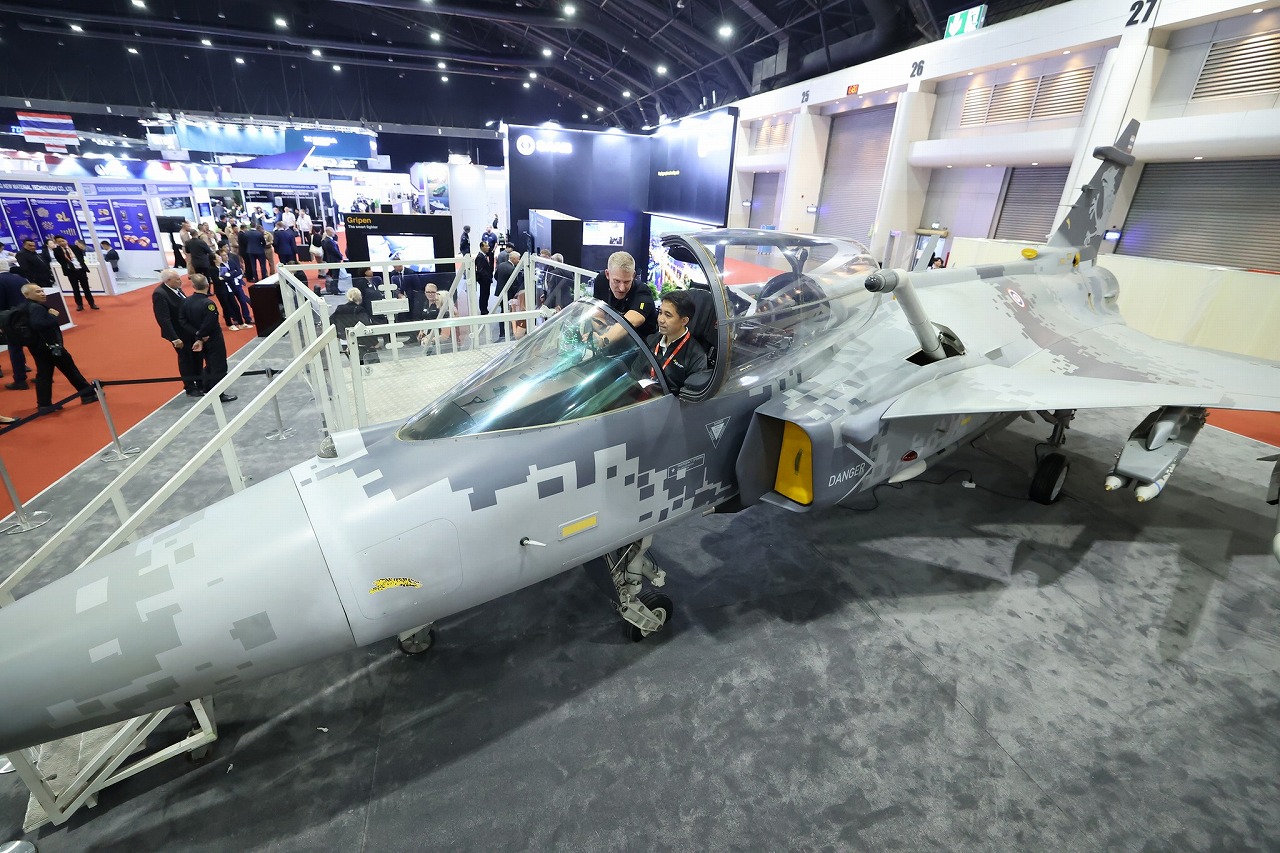 中でも特に注目を集めたのはスウェーデンSaab社の展示ブースで、単座のGripen E戦闘機の実物大モックアップ(1:1、ファイバーグラス製)が展示された。