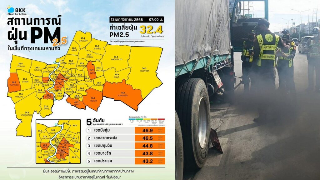 バンコクの大気汚染、危険水準に上昇! 12区で深刻な数値。住民に警戒と対策を呼びかけ。
