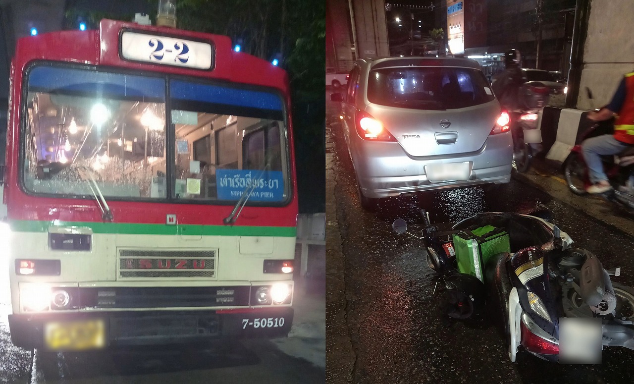 バンコク–ノンタブリー通りで、路線バスがバイクをはね1名死亡、1名軽傷。