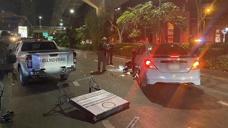 バンコク、スクンビットソイ20の検問所に車両が突入! よそ見運転主張も実際は飲酒運転。