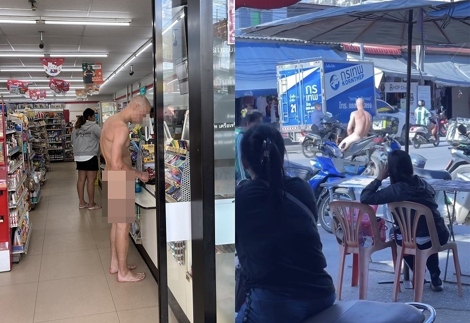 【住民騒然】タイ北部のコンビニに全裸の外国人男性現る! 直前に大麻でキメキメ。
