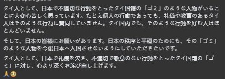 また日本の人々への謝罪の投稿もあり、タイ・日本両国の関係当局による法的対応を求める声も上がっていました。
