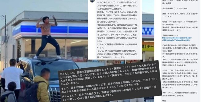タイの有名youtuber「ジェックぺッホー」(แจ็กแปปโฮ、JACKPAPHO)が、日本の観光地「富士山ローソン」の駐車場で、車の屋根に登り上半身裸で踊るというニュースをお伝えしましたが、その本誌の記事が、尊敬す … 続きを読む 大使館への抗議や陳情はやめて! タイ人迷惑youtuberの件で、在タイ日本大使館へコメント殺到!