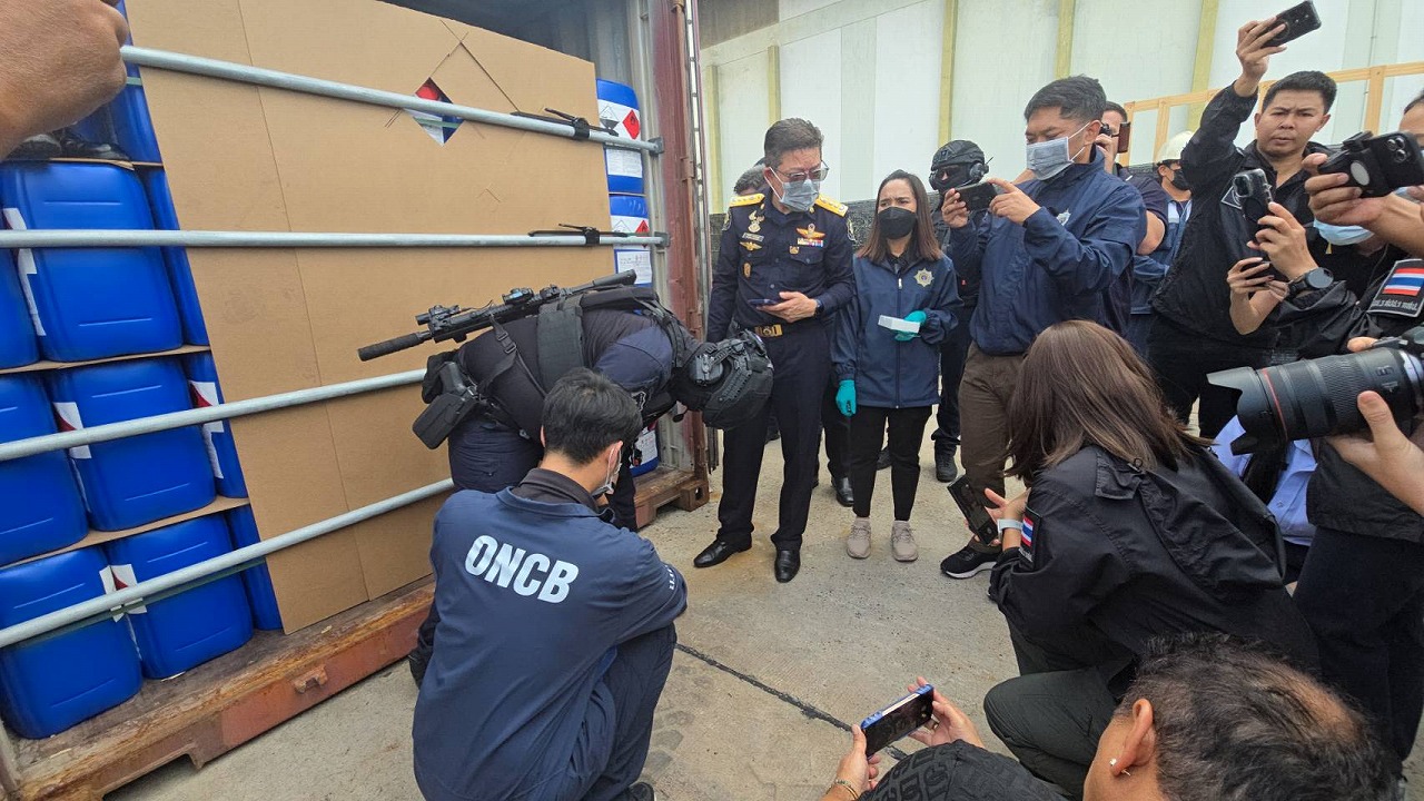 シラチャ・レムチャバン港で22トンの麻薬原料物質を押収「No Chemical No Drugs」作戦開始!