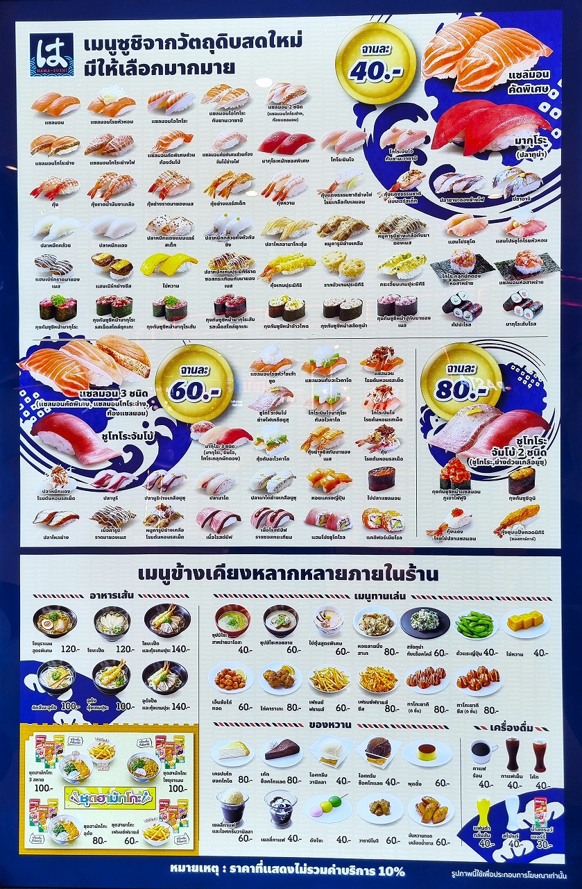 サイドメニューで100バーツを超えるものはありますが、お寿司は40バーツ、60バーツ、80バーツの3種類のみ。(プロモーションなどを除く)